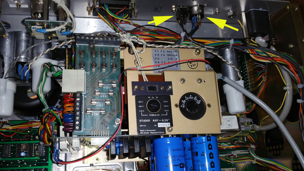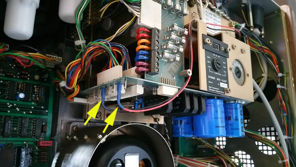 Da die VU-Meter für Aussteuerungszwecke nicht geeignet, bzw. zu träge sind, habe ich mir einen 5-Pol Anschluss für ein RTW-Meter eingebaut. Hierüber wird das RTW mit 24V und dem Audiosignal versorgt. Zustätzlich habe ich von der Werkstatt die Wiedergabeplatinen dahingehend modifizieren lassen, dass ich per Schalter von CCIR auf NAB Entzerrung umschalten kann.